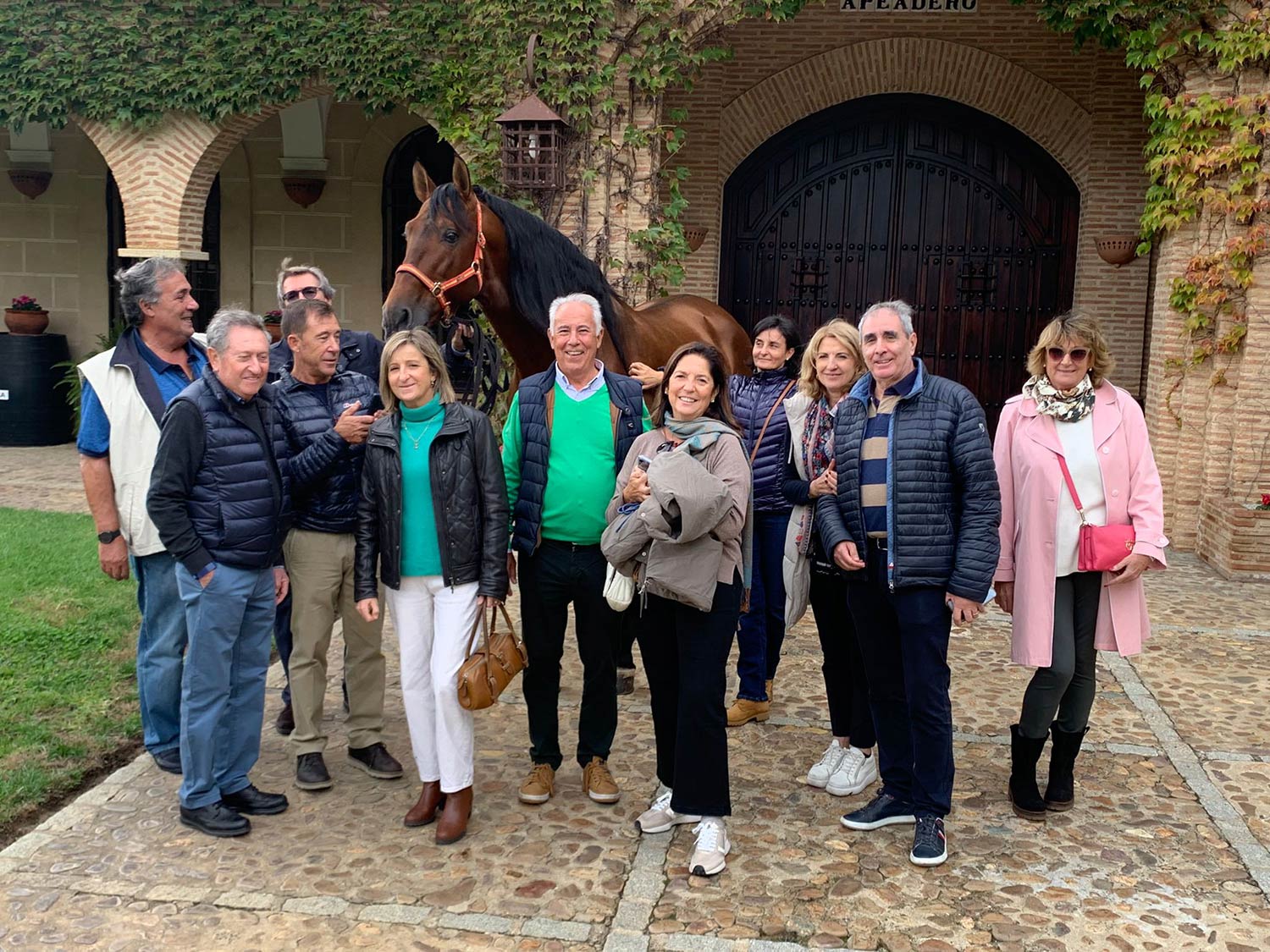 Igualmente, se pudo disfrutar de un tour de la espectacular Yeguada J.T. , donde se pudieron ver caballos, yeguas, potros y sementales de una belleza singular y numerosos premios mundiales, todo ello explicado por el criador de caballos Juan Tirado, y con la colaboración de nuestro socio Bernardo Rodríguez.