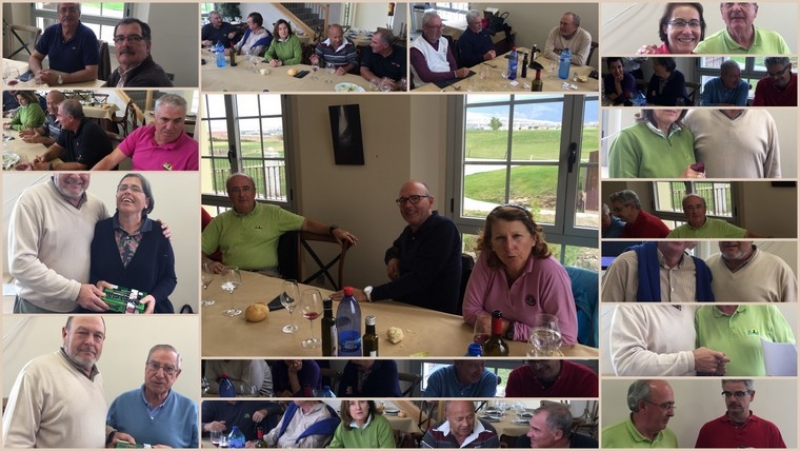 Tras el torneo, unos refrescos en la cafetería de la casa club, seguidos de una estupenda y típica comida segoviana, en la que se notó el cambio de cocina. A su término, la entrega de premios a los integrantes de cuadro de honor (una docena de bolas para los ganadores, y unas botellas de vino para los segundos y tercer clasificados). En el sorteo, el green-fee doble gentileza del campo, fue a parar a nuestra secretaria, Julia Aguillaume y una botella de vino a Agustina Olarra.