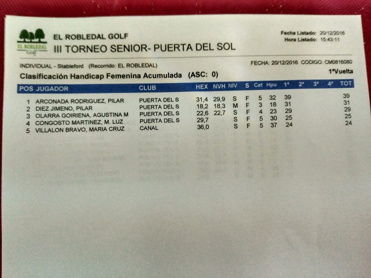 RESULTADOS TORNEO SÉNIOR EN EL ROBLEDAL